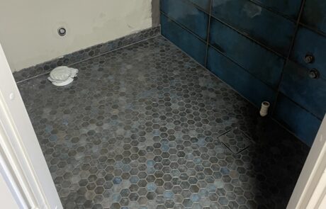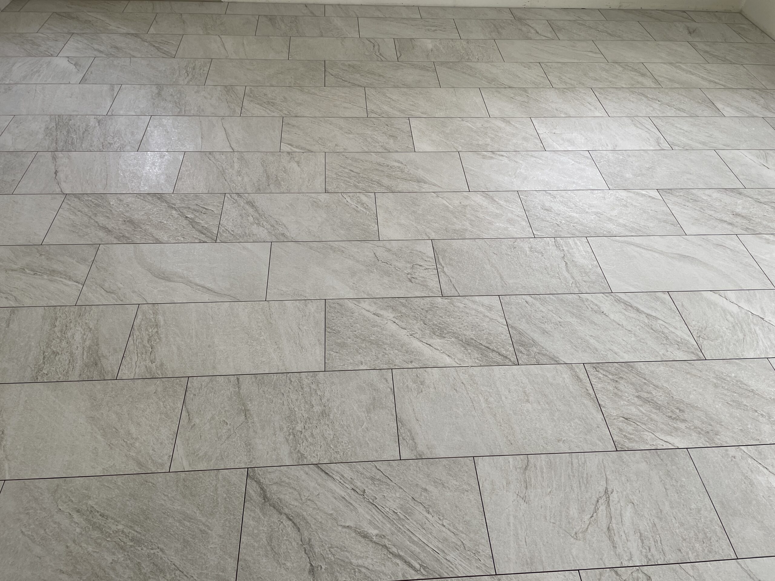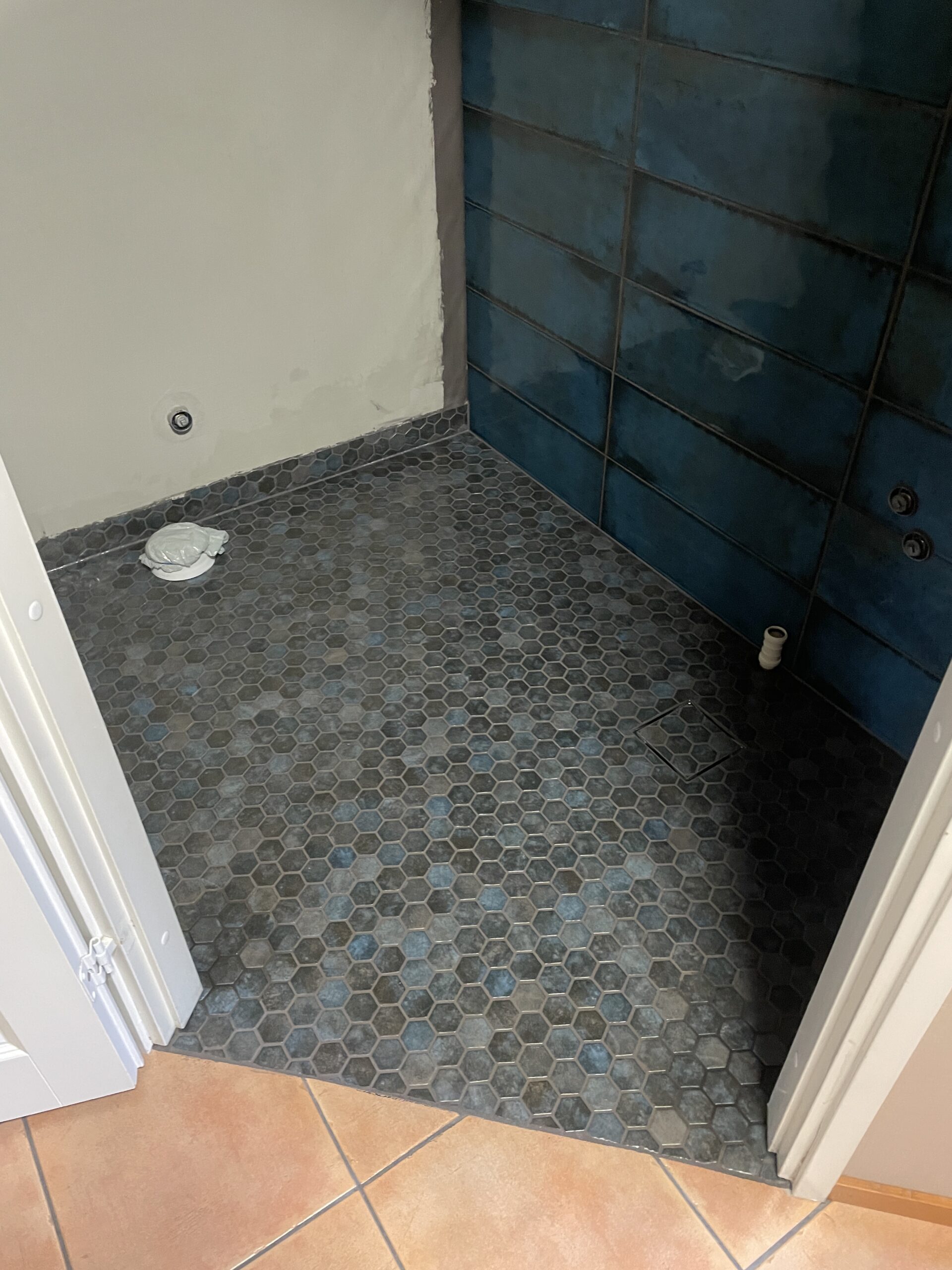 Ontto ääni paljasti virheellisen laatoituksen. Asiakkaan pyynnöstä vaihdoimme kolme lattialaattaa. Kosteusvaurioita ei löytynyt, mutta laatat oli alun perin asennettu väärin.